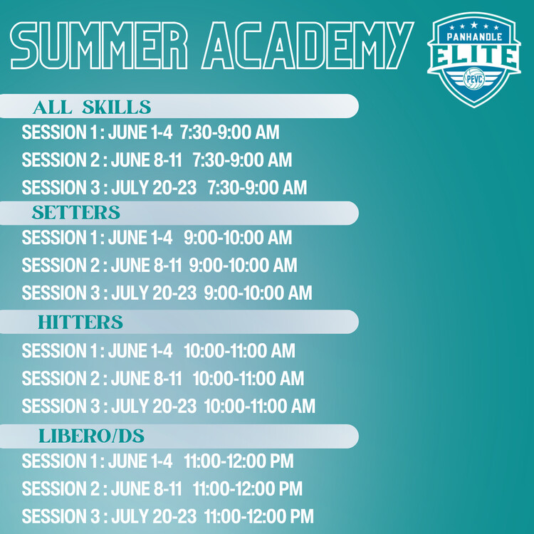 Panhandle Elite offers indoor and beach training for ages 6-18, club teams for ages 10-18, as well as camps, clinics, and private lessons.